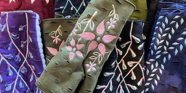 Fleece lined fingerless gloves in beautiful floral patterns. Fashion for your fingers!!